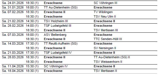 Spielplan zur Rückrunde 2026